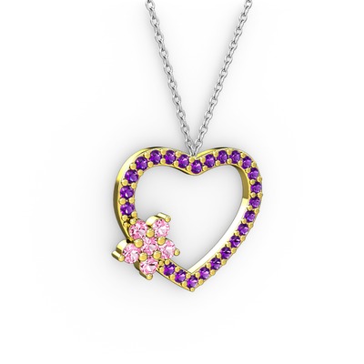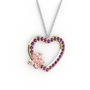 Pembe kuvars ve ametist 14 ayar altın kolye (40 cm beyaz altın rolo zincir)