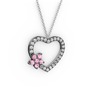 Pembe kuvars ve beyaz zirkon 925 ayar siyah rodyum kaplama gümüş kolye (40 cm beyaz altın rolo zincir)
