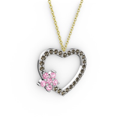 Pembe kuvars ve dumanlı kuvars 925 ayar gümüş kolye (40 cm altın rolo zincir)
