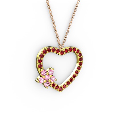 Pembe kuvars ve garnet 14 ayar altın kolye (40 cm rose altın rolo zincir)