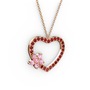 Pembe kuvars ve garnet 18 ayar rose altın kolye (40 cm rose altın rolo zincir)