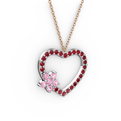 Pembe kuvars ve garnet 925 ayar gümüş kolye (40 cm rose altın rolo zincir)