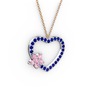 Pembe kuvars ve lab safir 14 ayar beyaz altın kolye (40 cm rose altın rolo zincir)