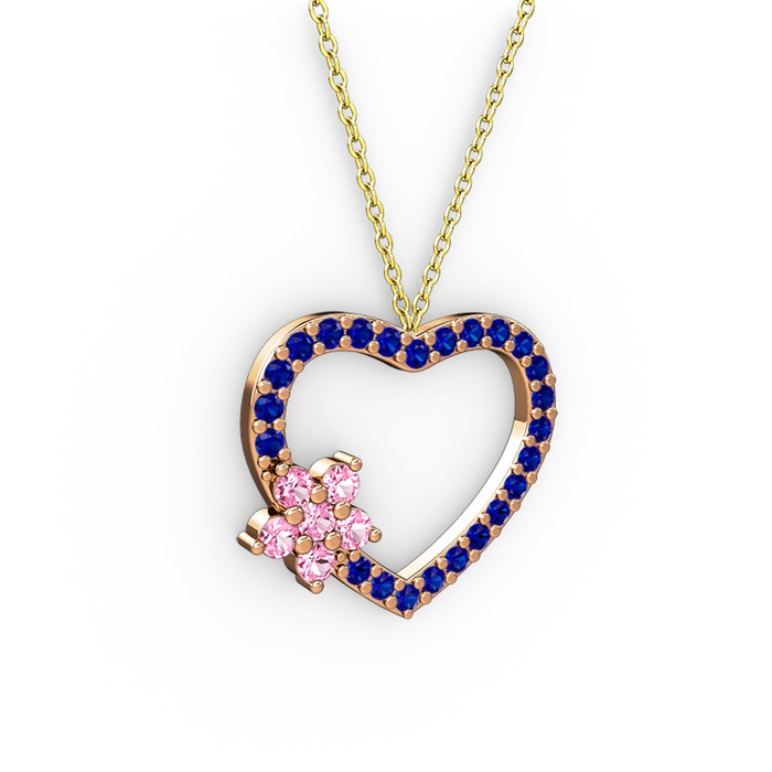Pembe kuvars ve lab safir 14 ayar rose altın kolye (40 cm altın rolo zincir)
