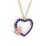 Pembe kuvars ve lab safir 8 ayar rose altın kolye (40 cm altın rolo zincir)
