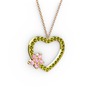 Pembe kuvars ve peridot 925 ayar altın kaplama gümüş kolye (40 cm rose altın rolo zincir)