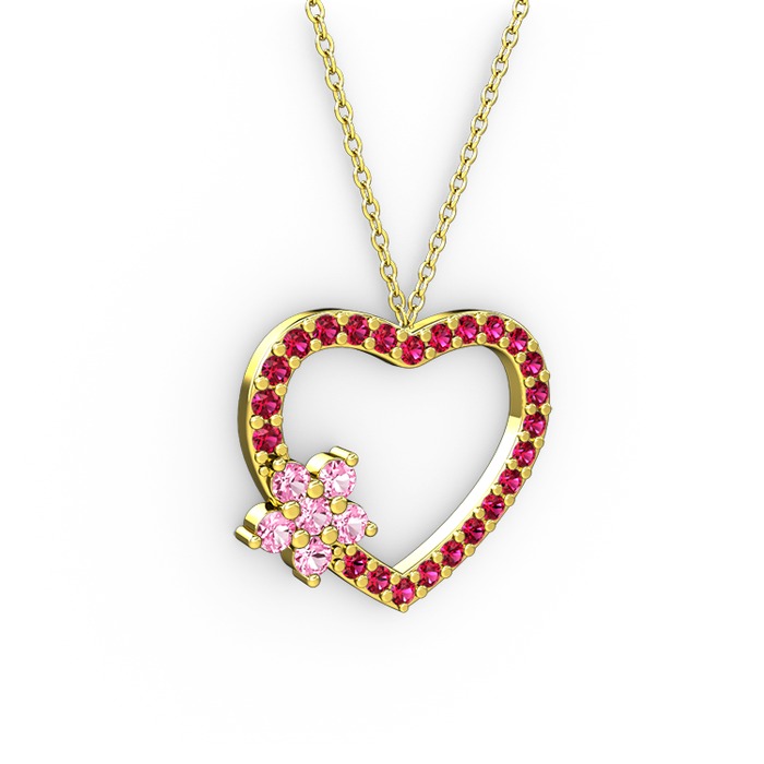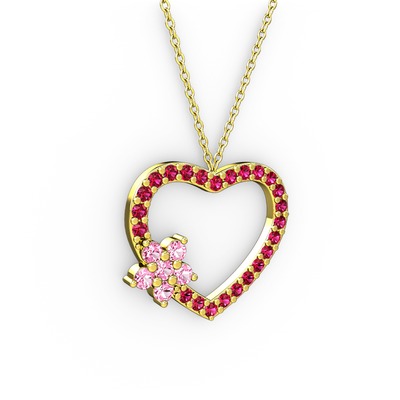 Pembe kuvars ve rodolit garnet 8 ayar altın kolye (40 cm gümüş rolo zincir)