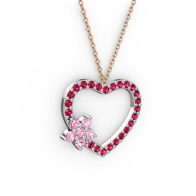 Pembe kuvars ve rodolit garnet 925 ayar gümüş kolye (40 cm rose altın rolo zincir)
