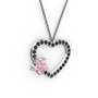 Pembe kuvars ve siyah zirkon 18 ayar beyaz altın kolye (40 cm gümüş rolo zincir)