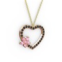Pembe kuvars ve siyah zirkon 925 ayar rose altın kaplama gümüş kolye (40 cm gümüş rolo zincir)