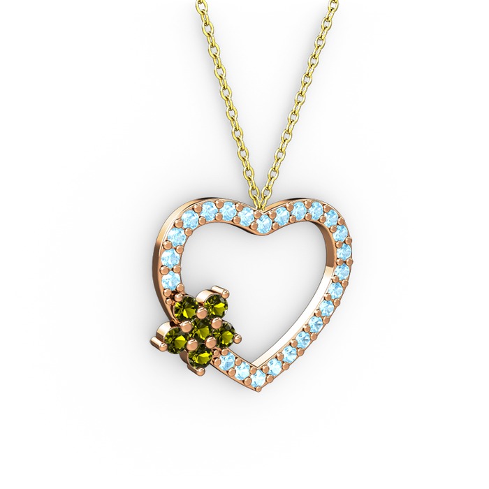 Peridot ve akuamarin 14 ayar rose altın kolye (40 cm gümüş rolo zincir)