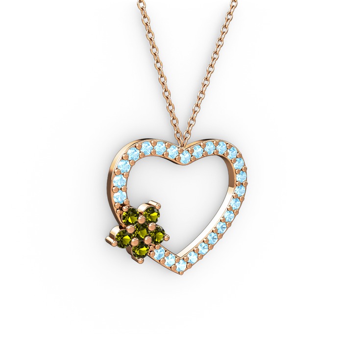 Peridot ve akuamarin 8 ayar rose altın kolye (40 cm rose altın rolo zincir)