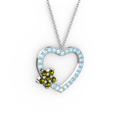 Peridot ve akuamarin 925 ayar gümüş kolye (40 cm beyaz altın rolo zincir)