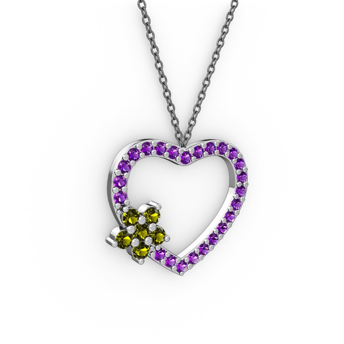 Peridot ve ametist 14 ayar beyaz altın kolye (40 cm gümüş rolo zincir)