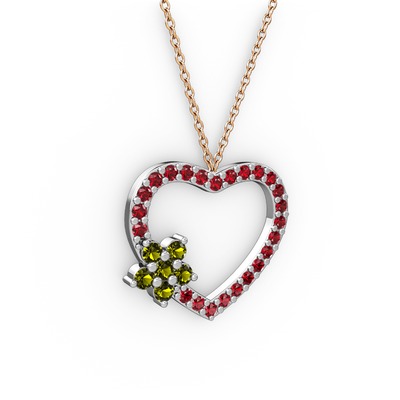 Peridot ve garnet 925 ayar gümüş kolye (40 cm rose altın rolo zincir)