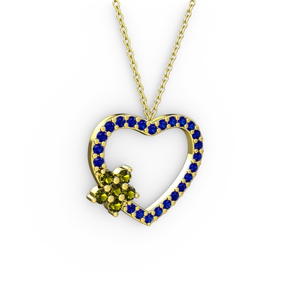 Peridot ve lab safir 925 ayar altın kaplama gümüş kolye (40 cm altın rolo zincir)