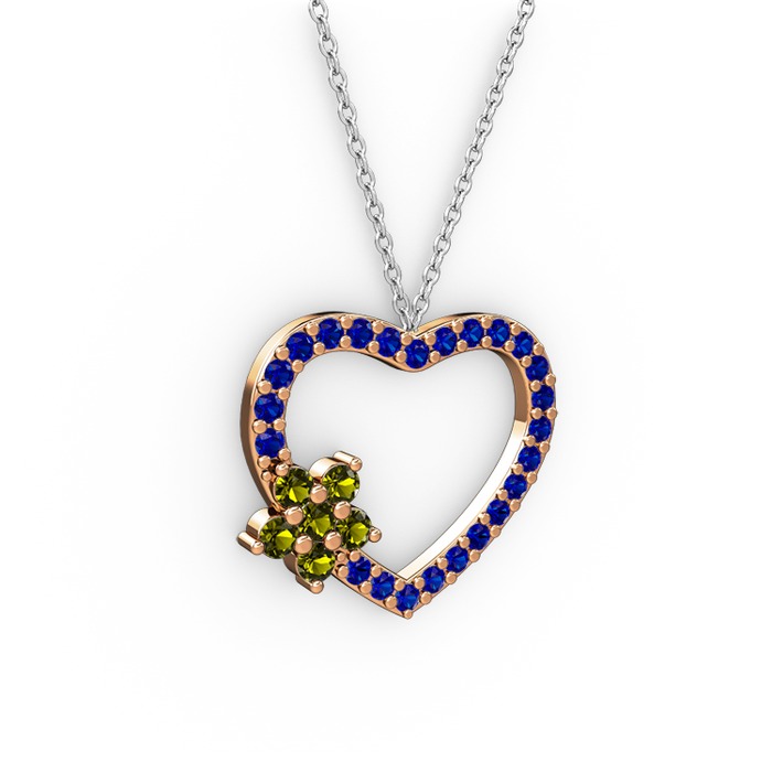 Peridot ve lab safir 925 ayar rose altın kaplama gümüş kolye (40 cm beyaz altın rolo zincir)