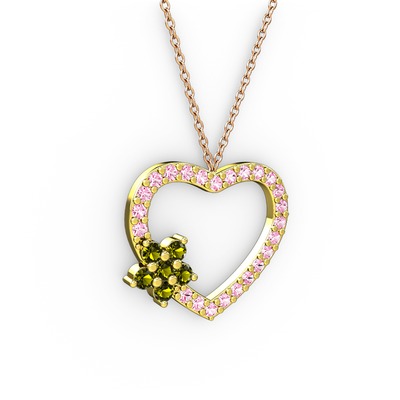 Peridot ve pembe kuvars 925 ayar altın kaplama gümüş kolye (40 cm rose altın rolo zincir)