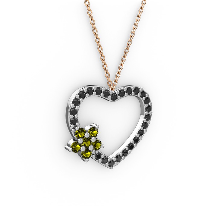 Peridot ve siyah zirkon 925 ayar gümüş kolye (40 cm rose altın rolo zincir)