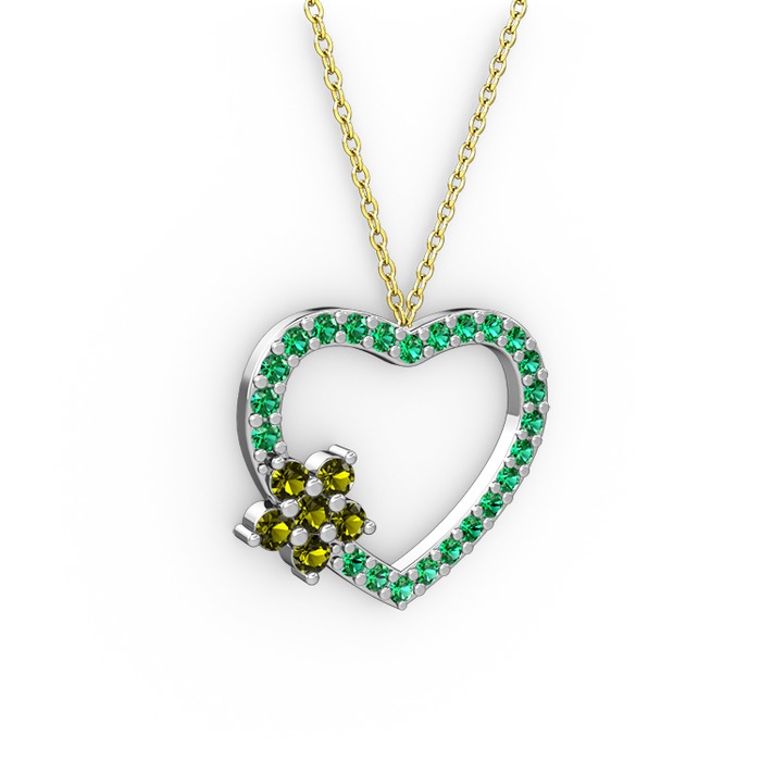 Peridot ve yeşil kuvars 18 ayar beyaz altın kolye (40 cm altın rolo zincir)