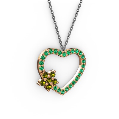 Peridot ve yeşil kuvars 18 ayar rose altın kolye (40 cm gümüş rolo zincir)