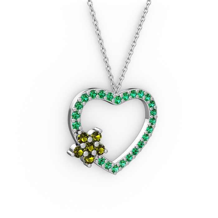 Peridot ve yeşil kuvars 8 ayar beyaz altın kolye (40 cm beyaz altın rolo zincir)