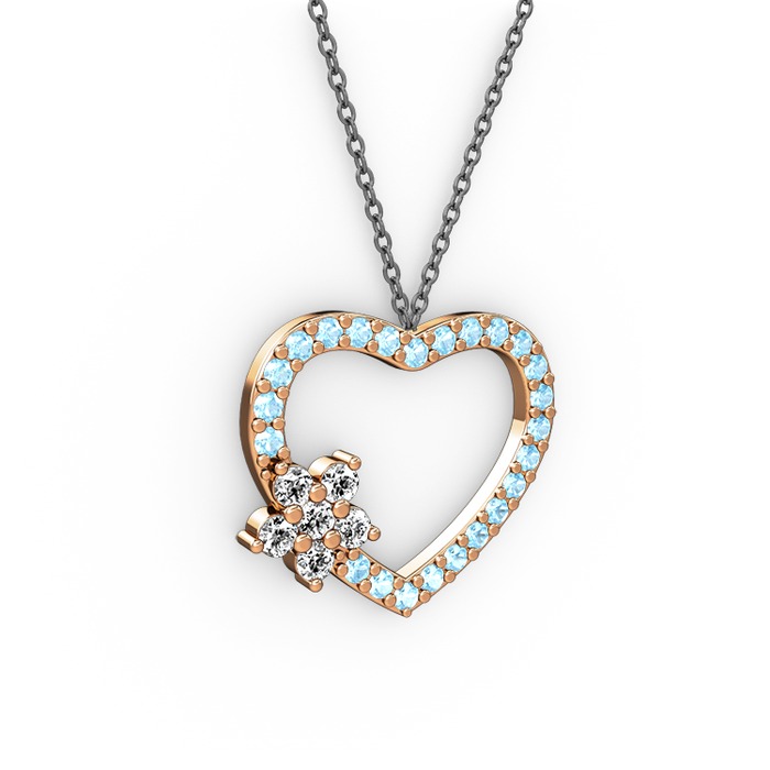 Pırlanta ve akuamarin 8 ayar rose altın kolye (0.216 karat, 40 cm gümüş rolo zincir)