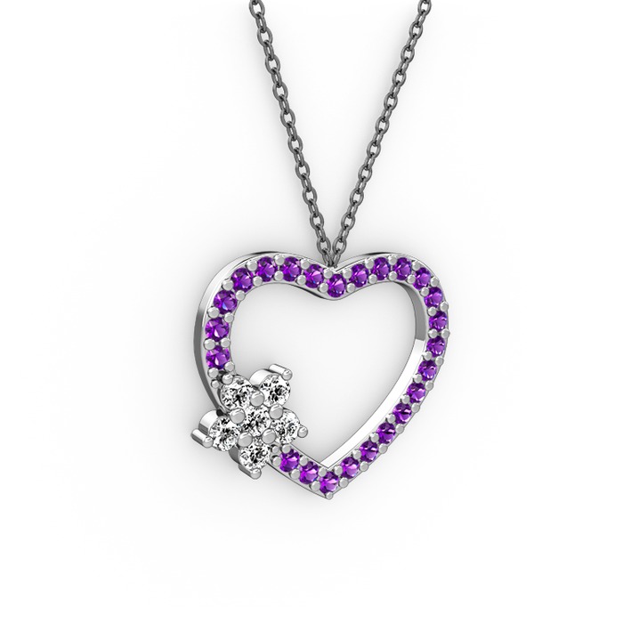 Pırlanta ve ametist 14 ayar beyaz altın kolye (0.216 karat, 40 cm gümüş rolo zincir)