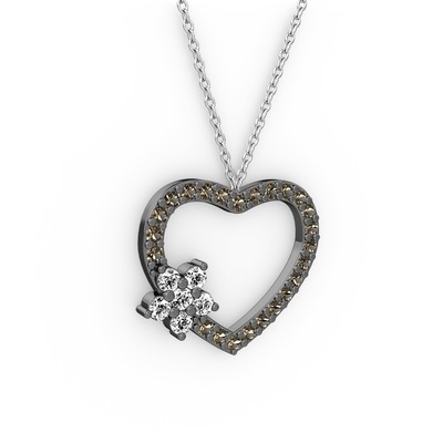 Pırlanta ve dumanlı kuvars 925 ayar siyah rodyum kaplama gümüş kolye (0.216 karat, 40 cm beyaz altın rolo zincir)