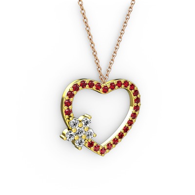 Pırlanta ve garnet 925 ayar altın kaplama gümüş kolye (0.216 karat, 40 cm gümüş rolo zincir)