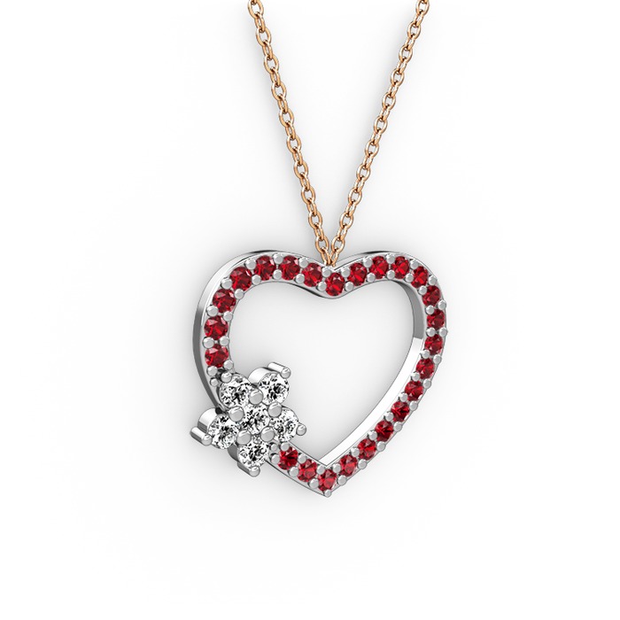 Pırlanta ve garnet 925 ayar gümüş kolye (0.216 karat, 40 cm rose altın rolo zincir)