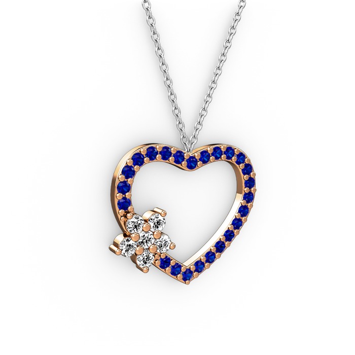Pırlanta ve lab safir 925 ayar rose altın kaplama gümüş kolye (0.216 karat, 40 cm beyaz altın rolo zincir)