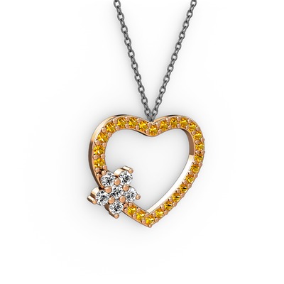 Pırlanta ve sitrin 14 ayar rose altın kolye (0.216 karat, 40 cm gümüş rolo zincir)