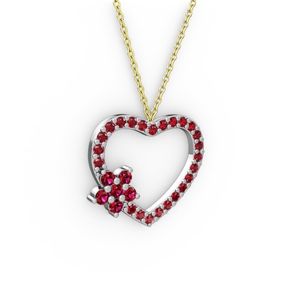 Rodolit garnet ve garnet 8 ayar beyaz altın kolye (40 cm altın rolo zincir)