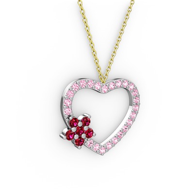 Rodolit garnet ve pembe kuvars 14 ayar beyaz altın kolye (40 cm altın rolo zincir)