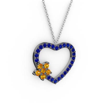 Sitrin ve lab safir 925 ayar siyah rodyum kaplama gümüş kolye (40 cm beyaz altın rolo zincir)