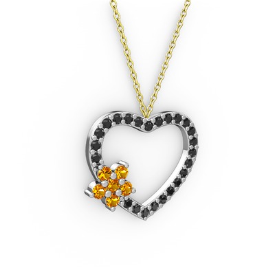 Sitrin ve siyah zirkon 925 ayar gümüş kolye (40 cm altın rolo zincir)