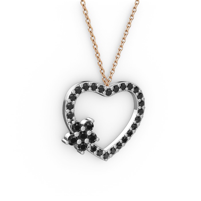 Siyah zirkon 14 ayar beyaz altın kolye (40 cm rose altın rolo zincir)