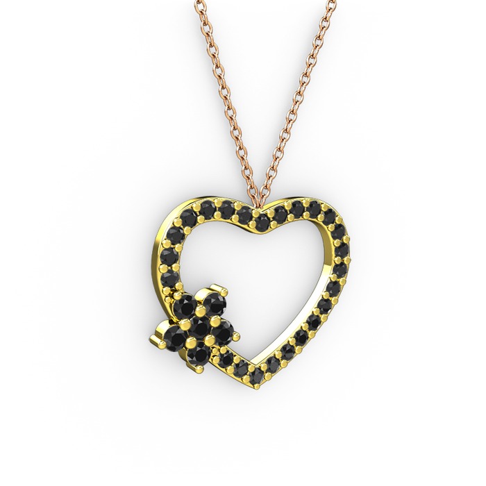 Siyah zirkon 8 ayar altın kolye (40 cm rose altın rolo zincir)