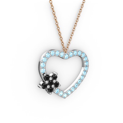Siyah zirkon ve akuamarin 925 ayar gümüş kolye (40 cm rose altın rolo zincir)