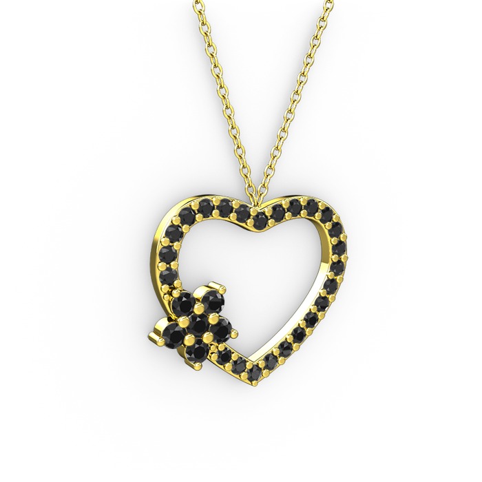 Siyah zirkon 925 ayar altın kaplama gümüş kolye (40 cm altın rolo zincir)