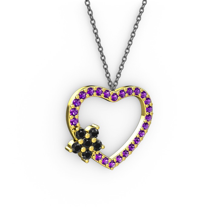Siyah zirkon ve ametist 14 ayar altın kolye (40 cm gümüş rolo zincir)