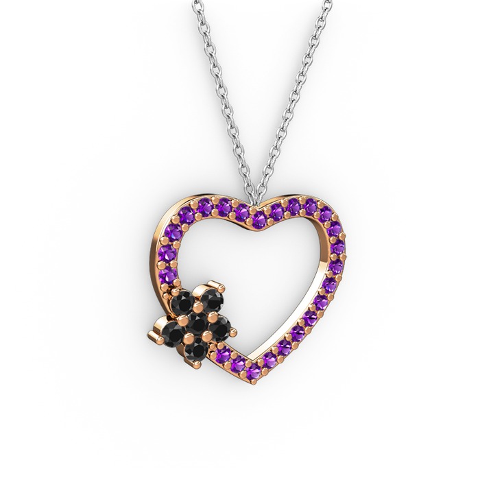 Siyah zirkon ve ametist 8 ayar rose altın kolye (40 cm beyaz altın rolo zincir)