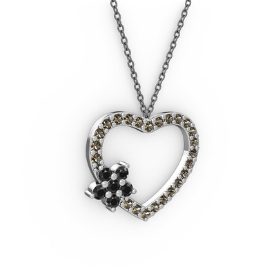 Siyah zirkon ve dumanlı kuvars 925 ayar gümüş kolye (40 cm gümüş rolo zincir)