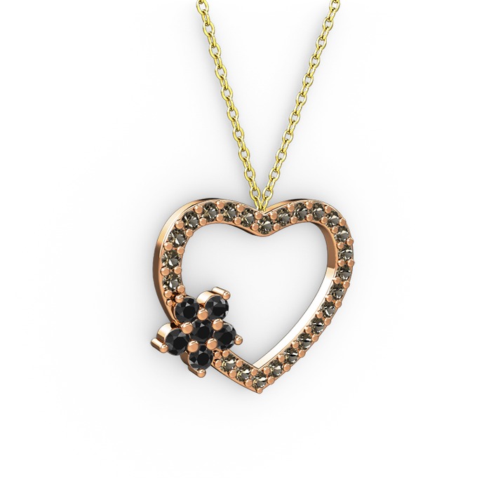 Siyah zirkon ve dumanlı kuvars 925 ayar rose altın kaplama gümüş kolye (40 cm gümüş rolo zincir)