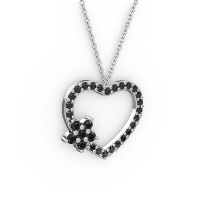 Siyah zirkon 925 ayar gümüş kolye (40 cm beyaz altın rolo zincir)