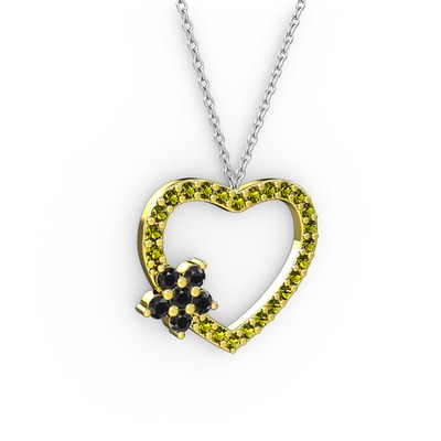 Siyah zirkon ve peridot 18 ayar altın kolye (40 cm beyaz altın rolo zincir)