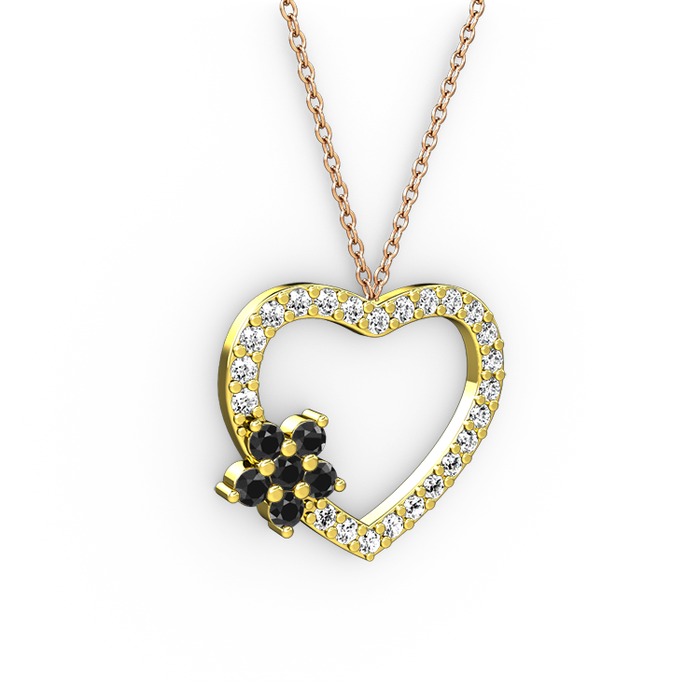 Siyah zirkon ve pırlanta 925 ayar altın kaplama gümüş kolye (0.36 karat, 40 cm rose altın rolo zincir)