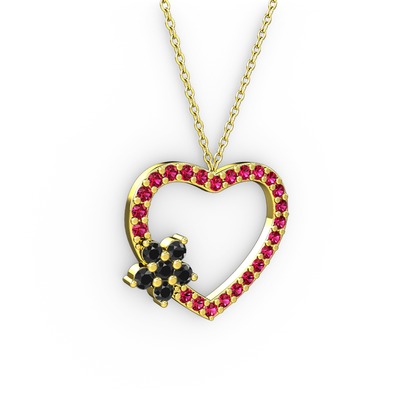 Siyah zirkon ve rodolit garnet 18 ayar altın kolye (40 cm altın rolo zincir)