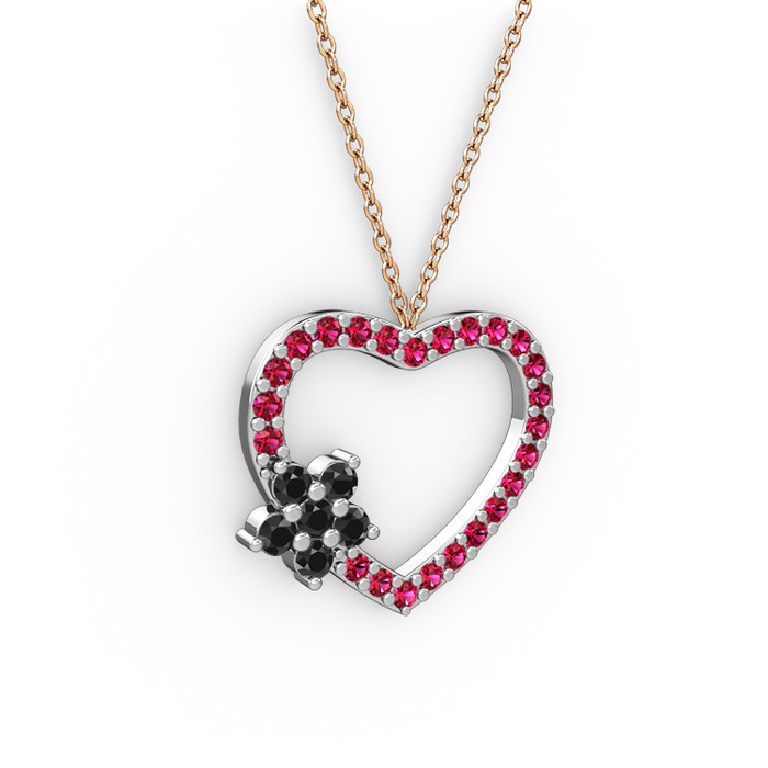 Siyah zirkon ve rodolit garnet 925 ayar gümüş kolye (40 cm rose altın rolo zincir)